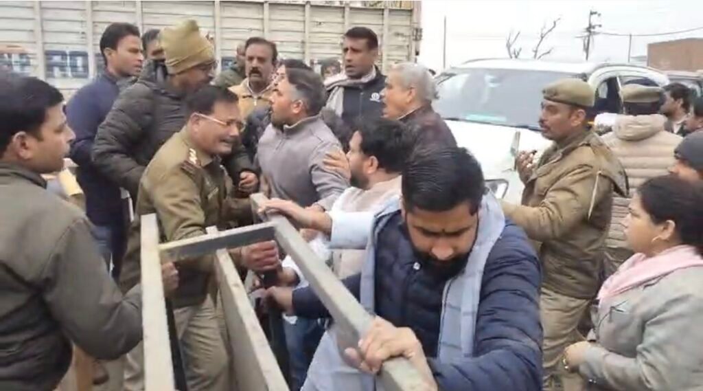 जिसको लेकर समर्थकों ने जमकर हंगामा किया। कांग्रेस नेता और कार्यकर्ता बेरीकेडिंग हटाने की कोशिश की, लेकिन पुलिस ने उन्हें आगे नहीं बढ़ने दिया।