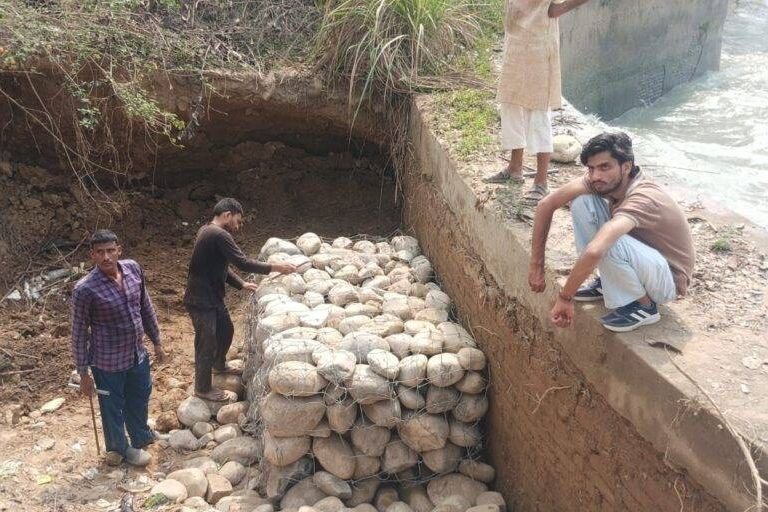 पत्थरों को इस तरह रखा गया कि पानी का बहाव रुक जाए और पटरी का कटान थम जाए। गनीमत रही कि वक्त रहते कंट्रोल कर लिया गया, वरना बड़ा हादसा हो सकता था।