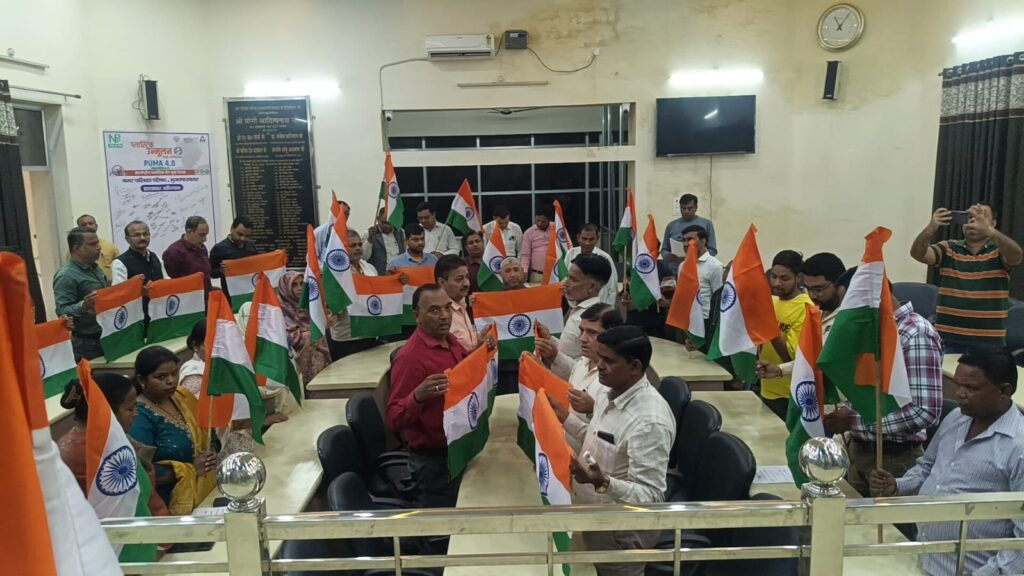 मुजफ्फरनगर नगर पालिका सभागार में वंदे मातरम गीत के 150 वर्ष पूरे होने पर उत्सव मनाया गया। पालिका अध्यक्ष मीनाक्षी स्वरूप और अधिशासी अधिकारी प्रज्ञा सिंह के नेतृत्व में कार्यक्रम हुआ। गीत और अनुवाद ईओ प्रज्ञा सिंह ने वंदे मातरम गाया। अध्यक्ष मीनाक्षी स्वरूप ने हिंदी अनुवाद कर कर्मचारियों को अर्थ समझाया। राष्ट्र हित, किसान, … Continue reading मुजफ्फरनगर पालिका में वंदे मातरम के 150 साल का जश्न, हाथों में लेकर कर्मचारियों ने गाया राष्ट्रगीत!